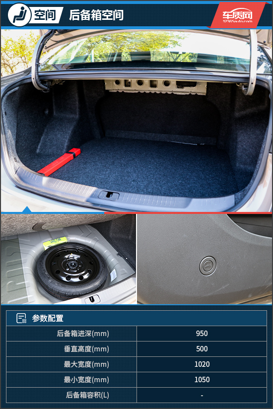 英朗后备箱尾门可以通过钥匙或位于驾驶位车门底部的开关进行开启,尾门上并未设计独立开关,实用性略有不足。后备箱内部空间规整,两侧轮拱虽然侵占了部分空间,不过整体影响并不大。后排座椅并不支持放倒,并且后备箱地板下方除备胎以外,也再没有多余的空间能够用于储物。总体来说,英朗的后备箱空间完全就是所见即所得,虽然并不富裕,但是也基本能够满足日常使用所需。
